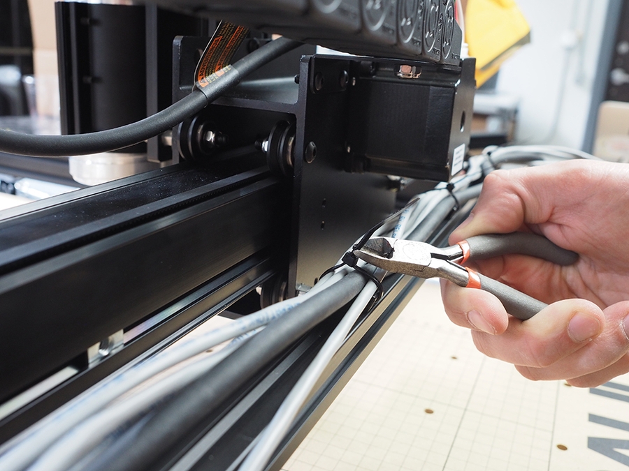 Gather up all the wires from the end of the top drag chain and the Y2 stepper motor. Zip tie them to the remaining 3 zip tie mounts.