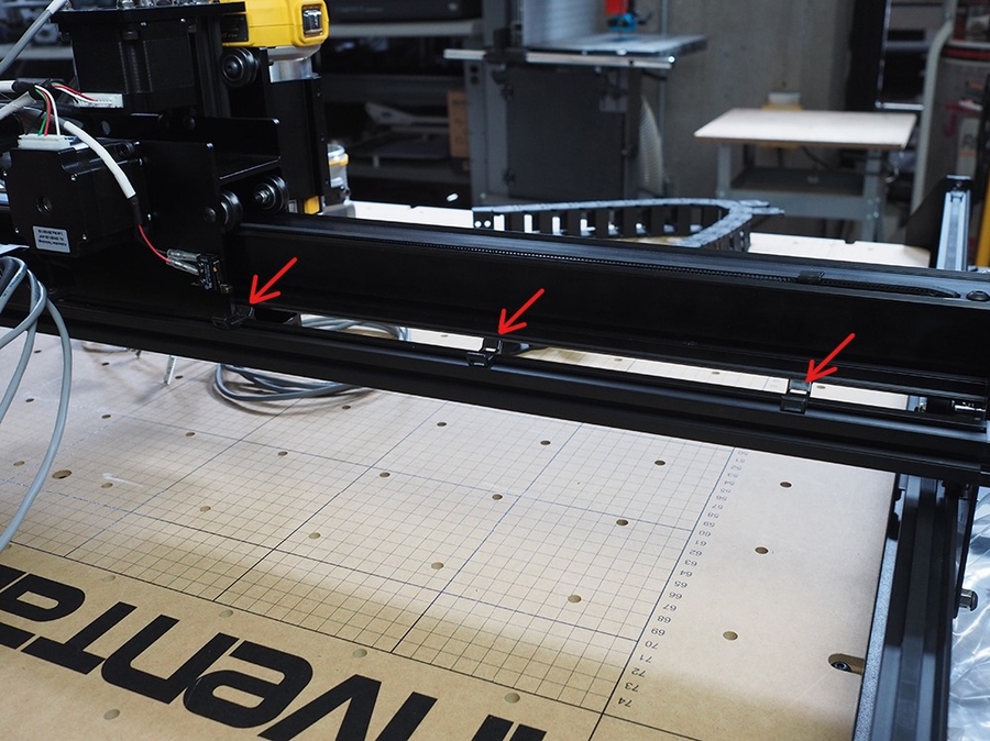Place 2 zip tie mounts on the back side of the aluminum extrusion that the drag chain is resting on. Place 1 at the far end of the extrusion near the right-side Y rail, and the other about 12 inches toward the center of the machine. These zip tie mounts will hold the Y2 (right side) motor cable.