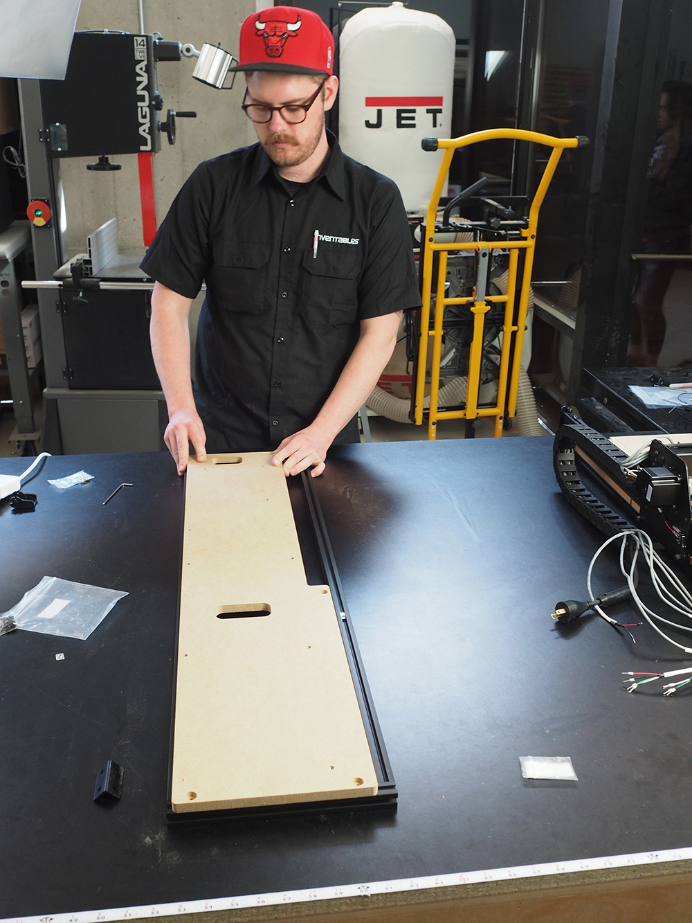 Lift the machine onto the side board and tighten down remaining button head cap screws.